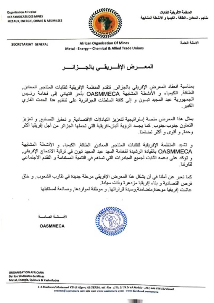 OASMMECA Organisation African of Mines Metal - Energy - Chemical & Allied Trade Unions